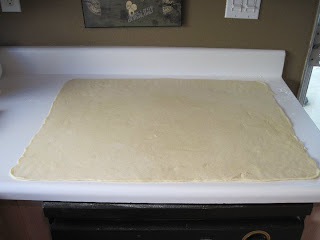 3. After dough has doubled in size roll dough out into a rectangle 28"x20".